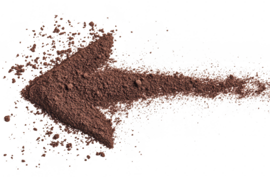 A creative composition of cocoa powder arranged in the shape of an arrow pointing left. symbolizing direction. with a clean white background ideal for culinary or design use