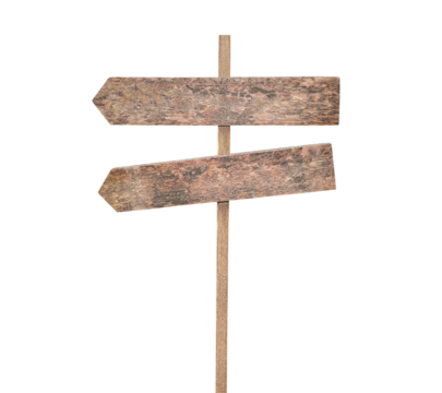 road sign consisting of two boards in the form of arrows, on a white isolated background