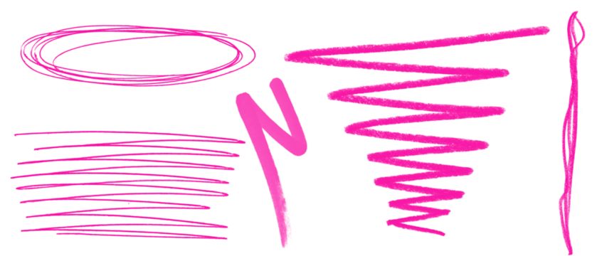 Brush arrow png file with neon pink lines and shapes on black background
