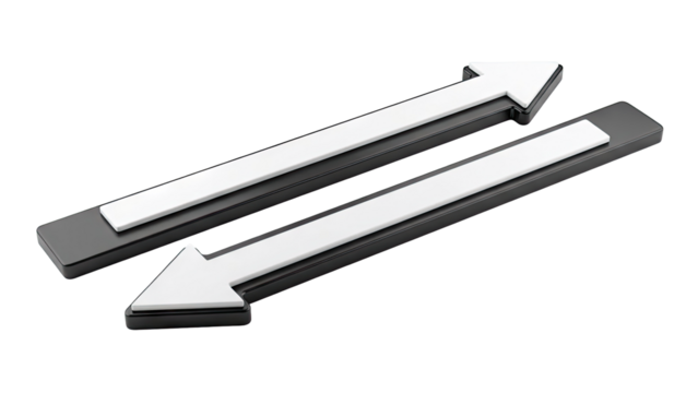 Silver arrow with fletching and arrowhead isolated on a transparent background metal