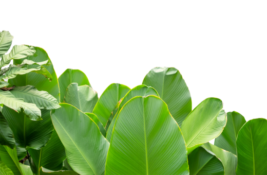 Group of green leaf isolated on white background with clipping path of graphice design, banana leaf, garden tree isolated