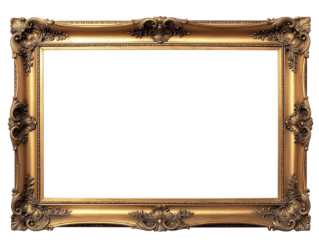 Gold ornate frames and decorative elements baroque style luxury design isolated on transparent background