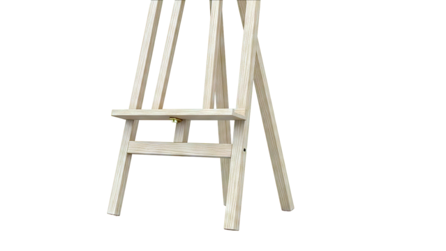 Wood art easel holding a blank white canvas, ready for painting, drawing, or design presentation. Transparent background
