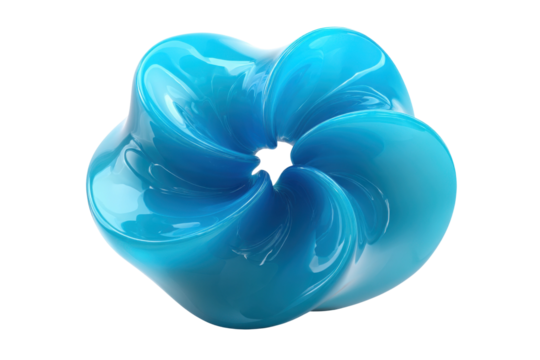 Modern indoor art gallery featuring dynamic blue sculptures. Isolated on transparent background, png.