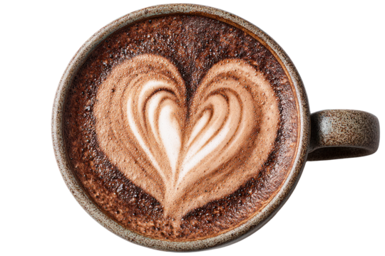 Coffee Heart: An overhead view of a coffee drink artfully adorned with a heart-shaped design