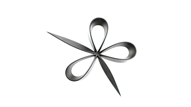 3D metallic abstract structure with geometric shapes cut out isolated on transparent background