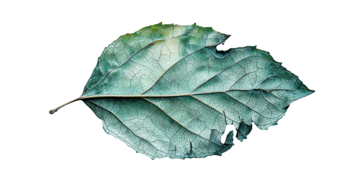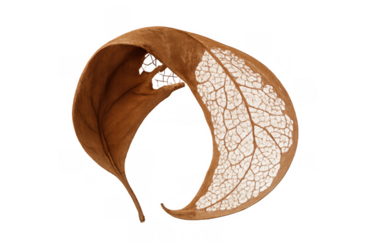 Dried skeleton leaf showing intricate veins and a decaying texture on transparent background, symbolizing autumn lifecycle