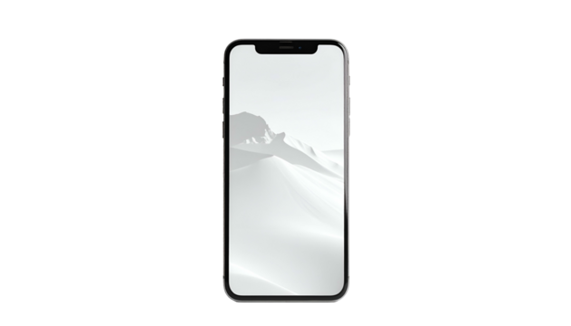 A modern smartphone, depicted in isolation against a stark black backdrop. The device is displaying a minimalist, monochrome landscape scene