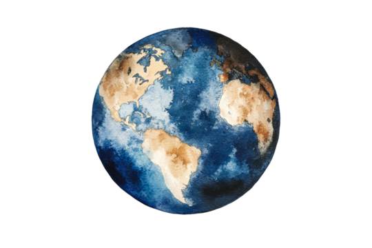 Watercolor earth illustration on transparent bg