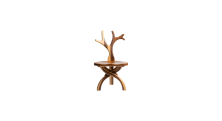 Unique wooden chair isolated on transparent background, showcasing artistic design and craftsmanship with a touch of rustic charm and natural elegance