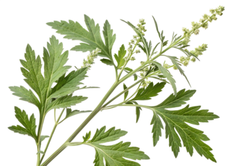 Green leaves of mugwort (Artemisia vulgaris), a medicinal and culinary herb, isolated on transparent background