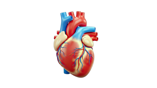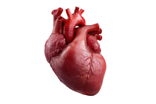 Anatomical heart model isolated PNG, detailed human organ with arteries and veins for medical education and healthcare resources