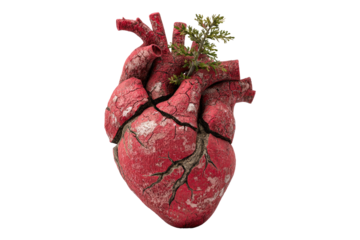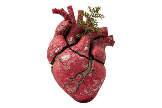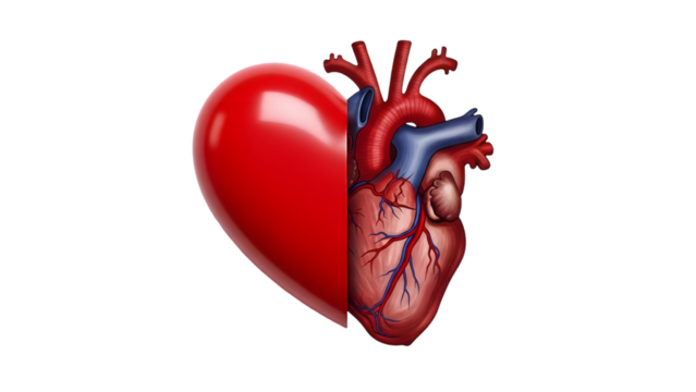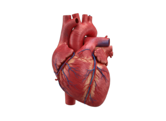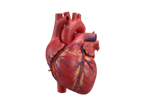 Realistic human heart isolated PNG, detailed anatomical model of the cardiovascular system for medical education and healthcare visuals