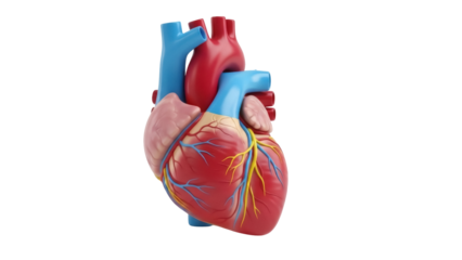 Realistic human heart model isolated PNG, anatomical organ with arteries and veins for medical study and educational resources
