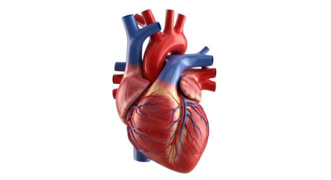 Detailed 3D Human Heart with Arteries and Veins, Transparent PNG