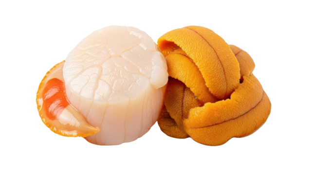 Fresh Raw Scallop and Sea Urchin Roe isolated PNG with Transparent Background