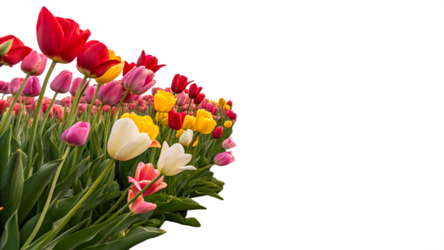 pink, red and orange tulip field isolated on white background, PNG. AI Generated