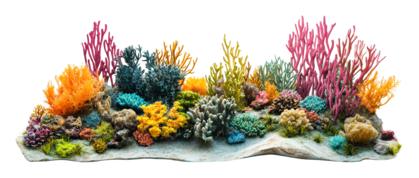 Colorful coral reef decoration for aquarium setups, cut out - stock png.