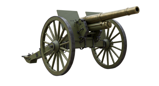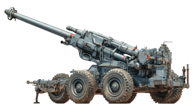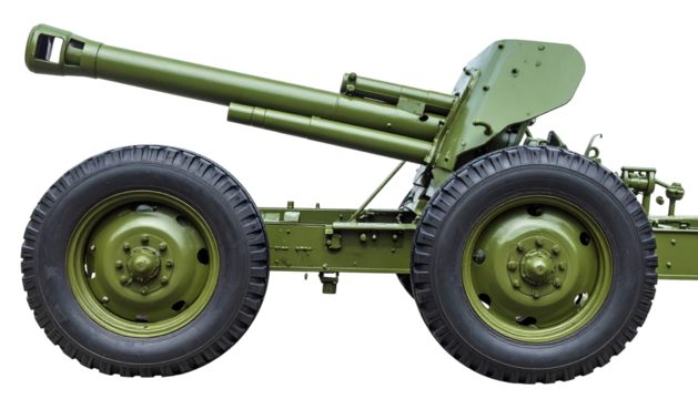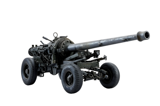 Heavy artillery weapon with large barrel and military-grade construction Isolated on a transparent background