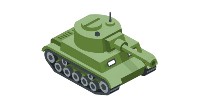 Isometric Military Tank Green Army Vehicle on Black Background Modern Toy Soldier Artillery on transparent background