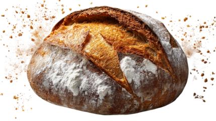 Isolated sourdough bread loaf, rustic bakery food, homemade artisan bread, whole grain loaf