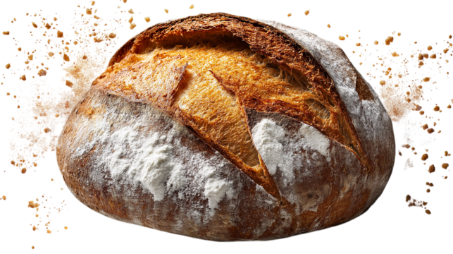 Freshly baked artisan bread display bakery food warm light isolated on transparent background