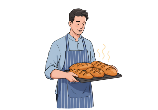 Illustration of a Baker Holding Freshly Baked Bread
