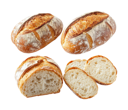 Freshly baked artisan bread loaves bakery food rustic view. Isolated on transparent background, png.