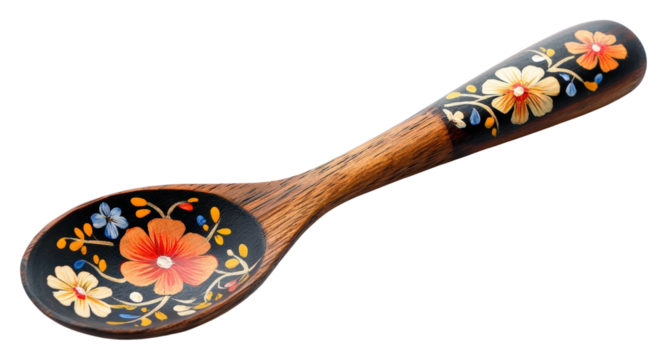Decorative wooden spoon artisan craft kitchen showcase rustic beauty isolated on transparent background