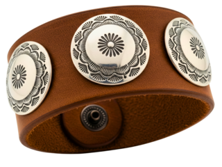 Handmade bracelet with brown leather and colored beads on a transparent background.