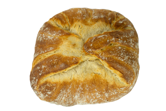 sourdough bread isolate white background golden crusty texture whole artisan loaf on transparent back for bakery branding, menu design, kitchen decor concept of food, bakery, nutrition.