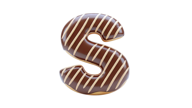 Donut shaped letter S with chocolate frosting and cream stripes