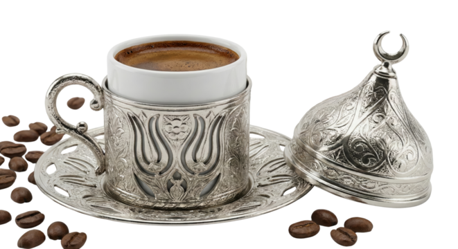 Traditional Turkish Coffee Cup with Lid and Coffee Beans