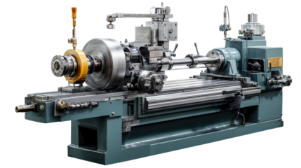 Lathe machine in a workshop background isolated on a Transparent background, PNG file.