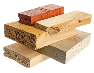 Stack of Various Construction Materials Including Wood and Bricks on Transparent Background