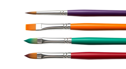 Paintbrushes with colorful handles isolated on transparent background, essential tools for painting and artistic expression