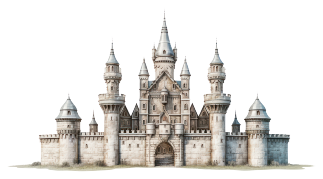 Ancient Stone Castle Wall with Towers Isolated on transparent background