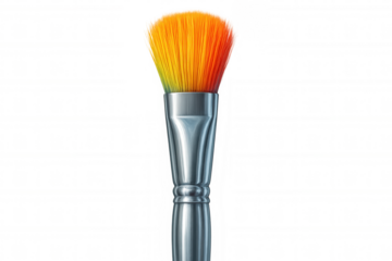 Transparent illustration of colorful art supplies with paintbrush and paint tubes