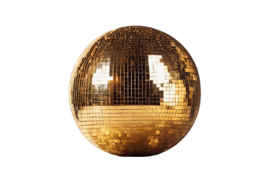 Golden disco mirror ball isolated on transparent background