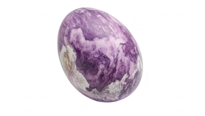 Glossy, amorphous, purple egg shape with internal, swirly light patterns