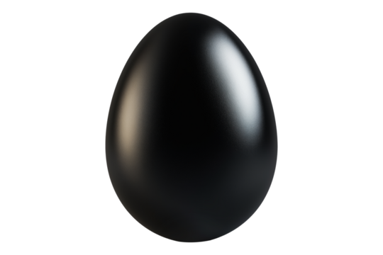Glossy black egg with smooth reflective surface isolated on white transparent background. Symbol of mystery, luxury, and uniqueness