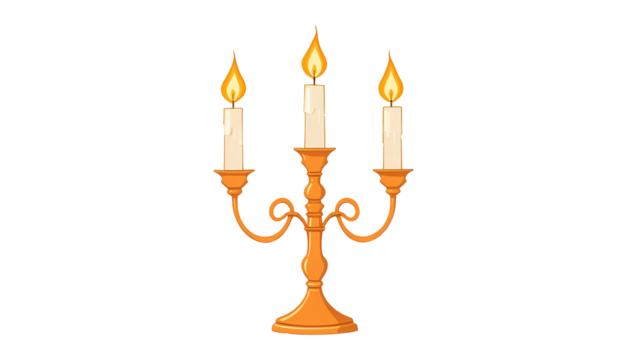Minimalist Three-Candle Candelabra Vector Illustration isolated on transparent background
