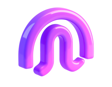 Glossy, abstract 3D shape, purple and pink gradient, on black background