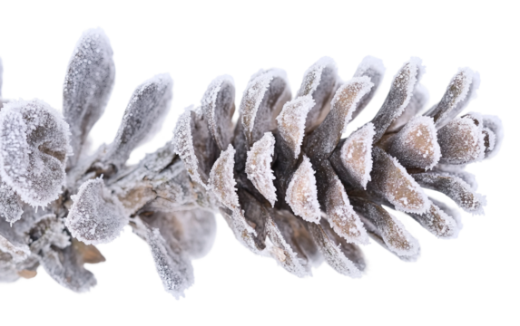 Artistic depiction of a pinecone atop a snow dusted branch creating a peaceful seasonal mood isolated on transparent background PNG