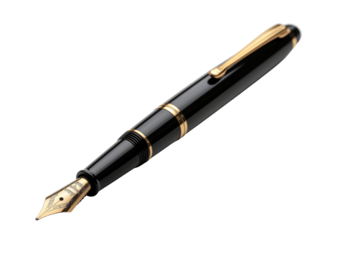 Exquisite handcrafted fountain pen with luxurious gold accents on a transparent background