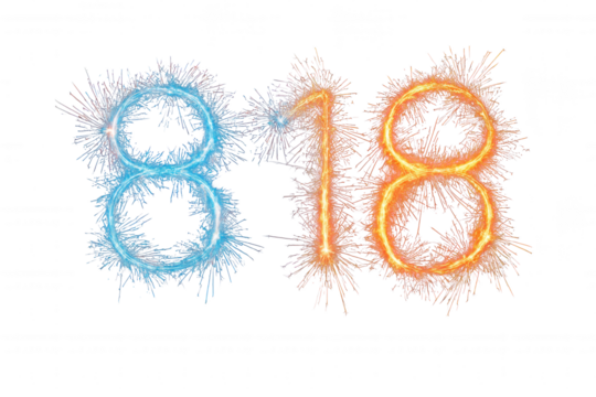 Sparkler numbers 818 in blue and orange isolated on transparent background