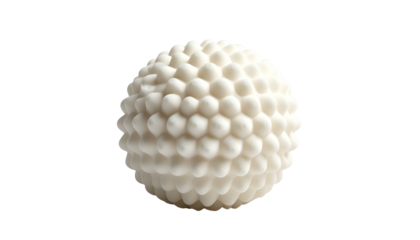 Whitish, spherical object with a textured, bumpy surface, isolated against a black backdrop
