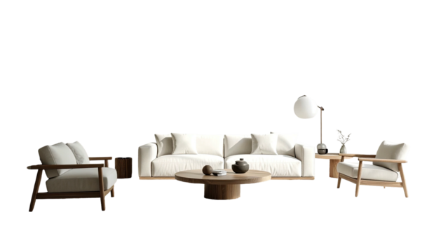 A modern living room setup featuring a sofa, table, lamp, and plants for a cozy atmosphere.