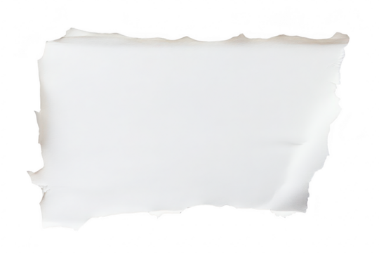 A torn piece of white paper with irregular edges. lying flat on a clean white surface. creating a minimalist aesthetic perfect for backgrounds or artistic presentations