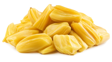 Ripe jackfruit bulbs isolated on transparent background. Jackfruit isolated on white background.